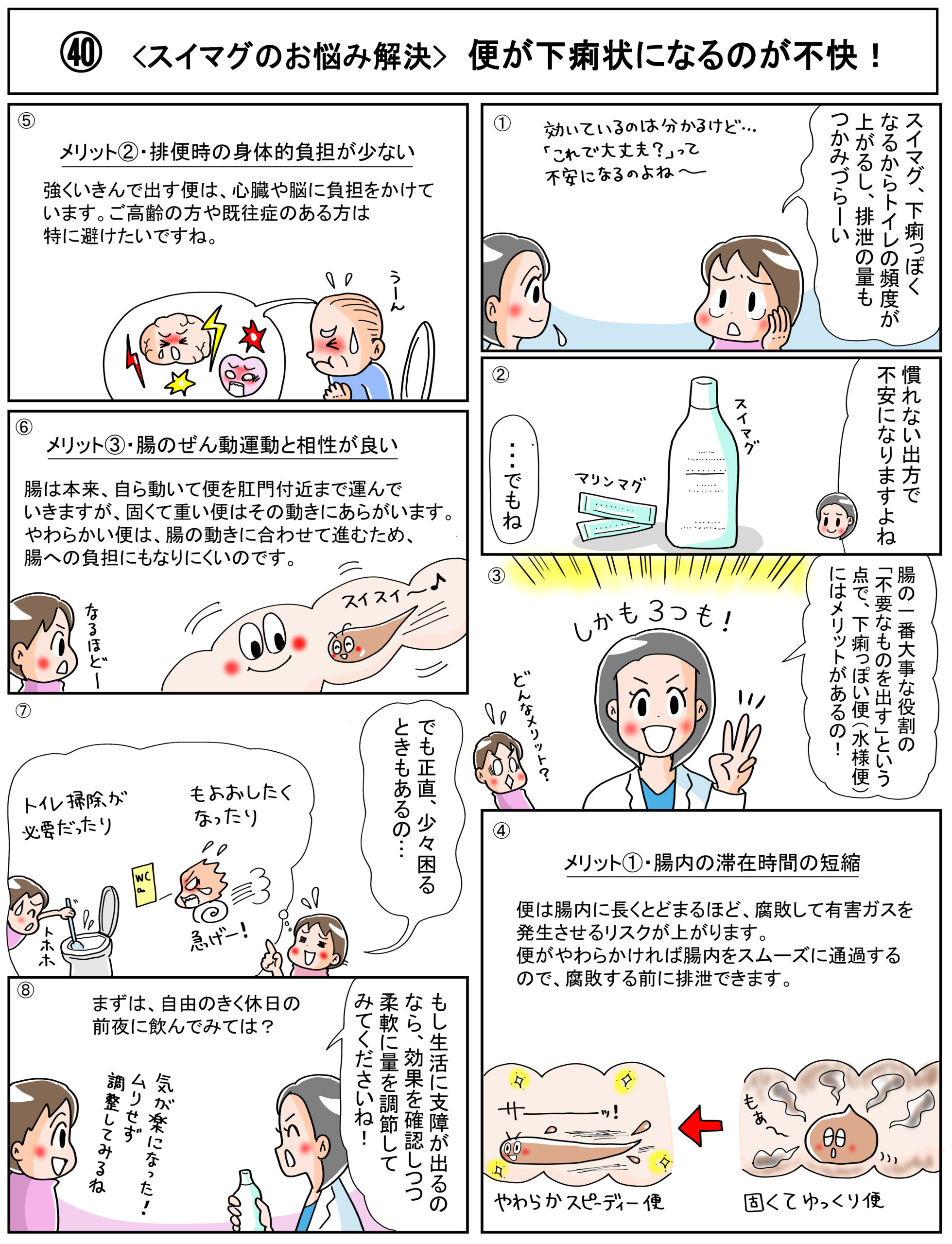 ㊵〈スイマグのお悩み解決〉便が下痢状になるのが不快! テキスト版